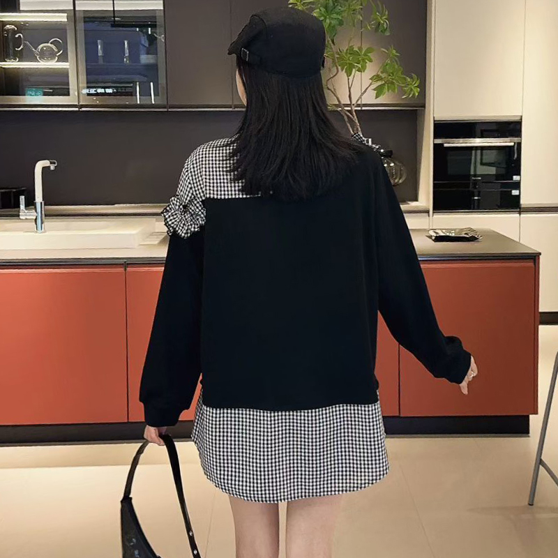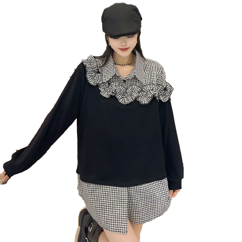 拼格子翻领花边衬衫女打底上衣胖mm2025冬季新款宽松大码显瘦女装