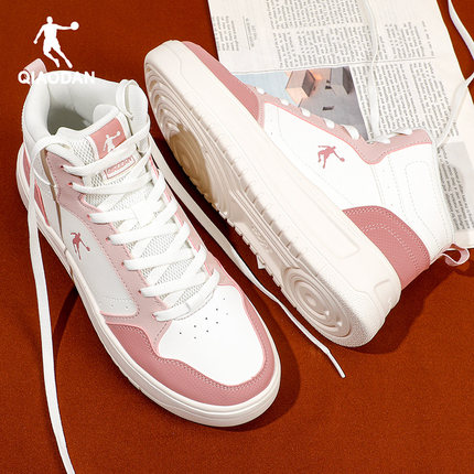 乔丹板鞋女鞋高帮2026新款学生休闲鞋子粉色厚底滑板小白鞋运动鞋
