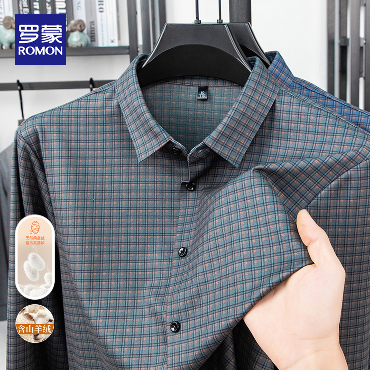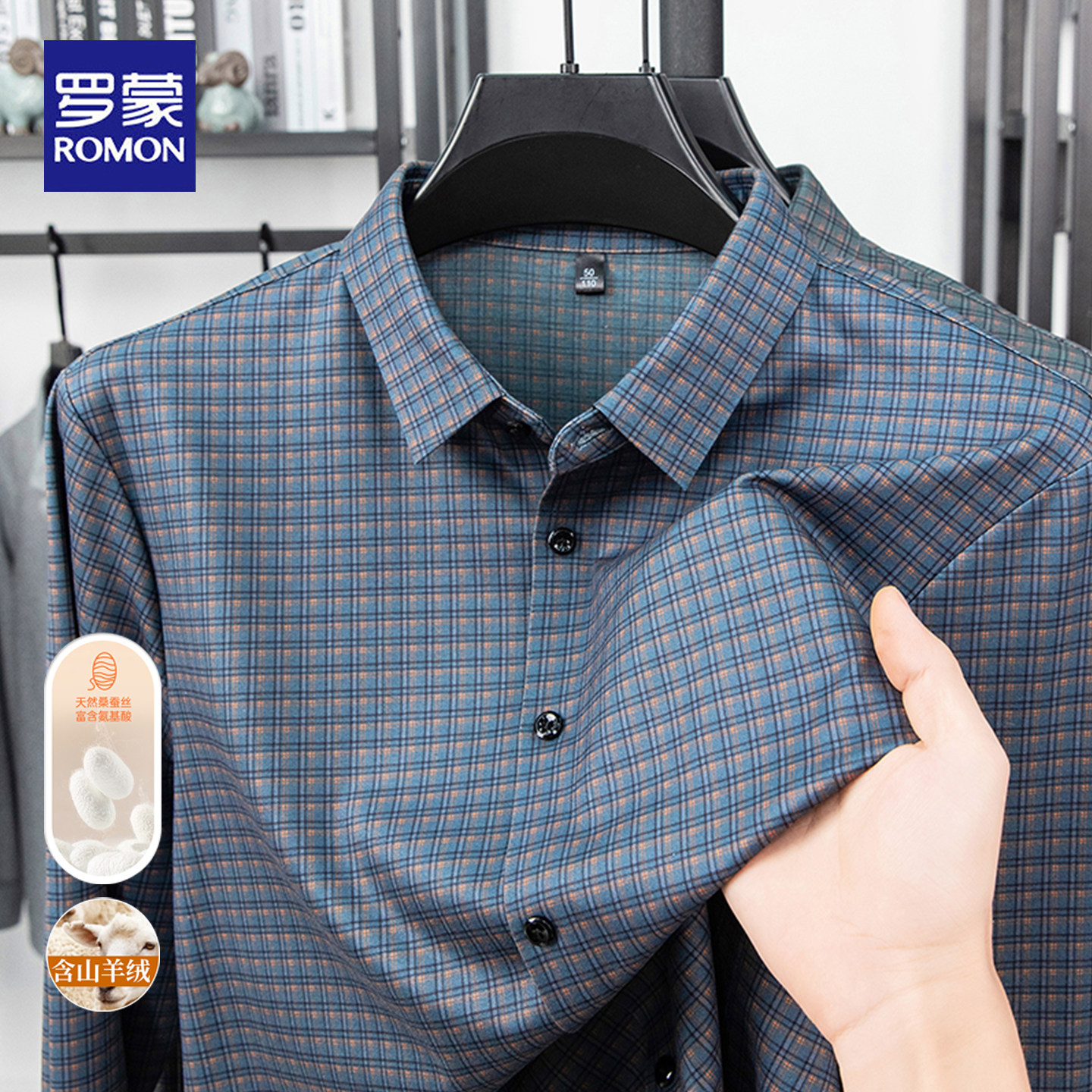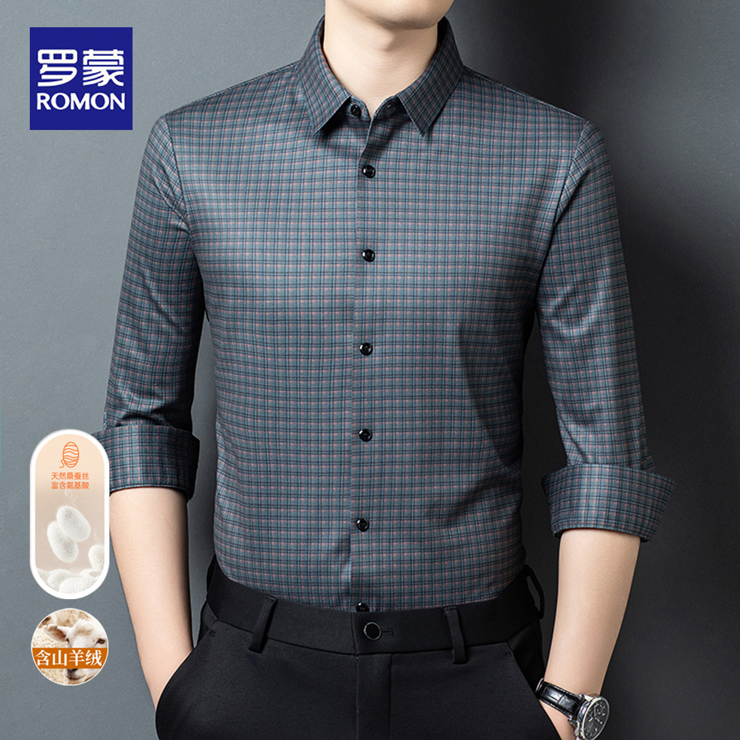 罗蒙春秋长袖衬衫男士亲肤舒适