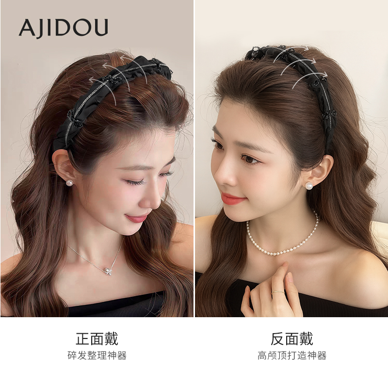AJIDOU阿吉豆发箍女款齿梳头箍防滑高颅顶发箍轻奢发卡高级感发饰