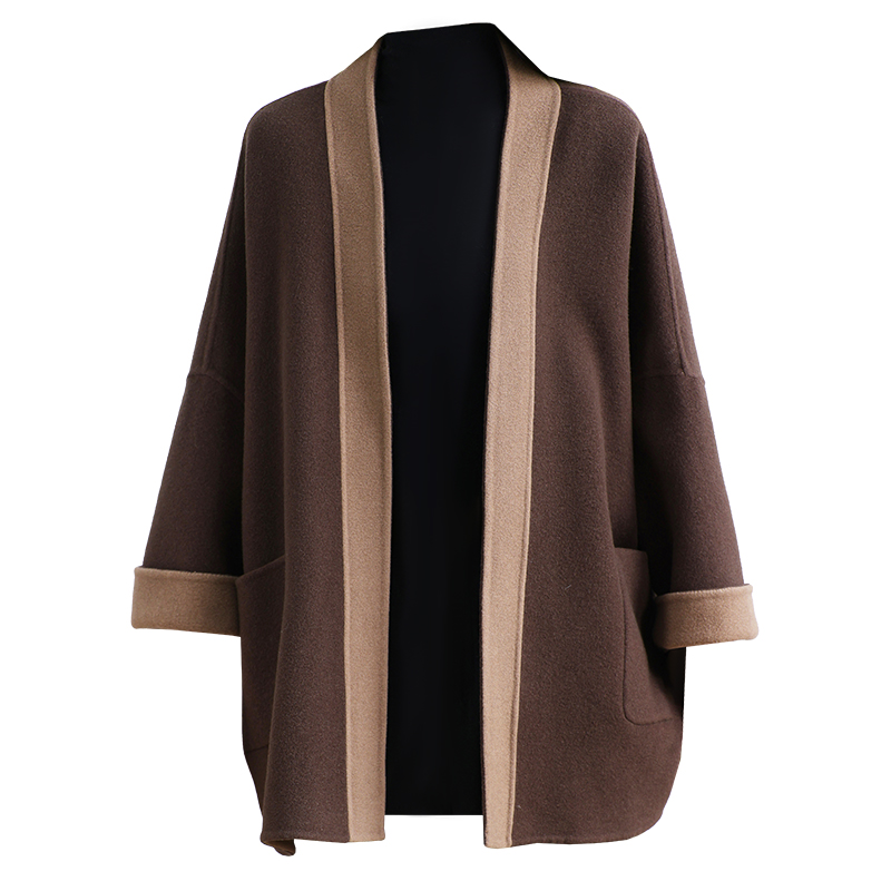 双面山羊绒大衣女2025冬新撞色蝙蝠袖短款小个子呢子山羊毛呢外套