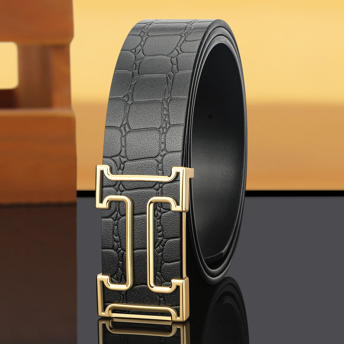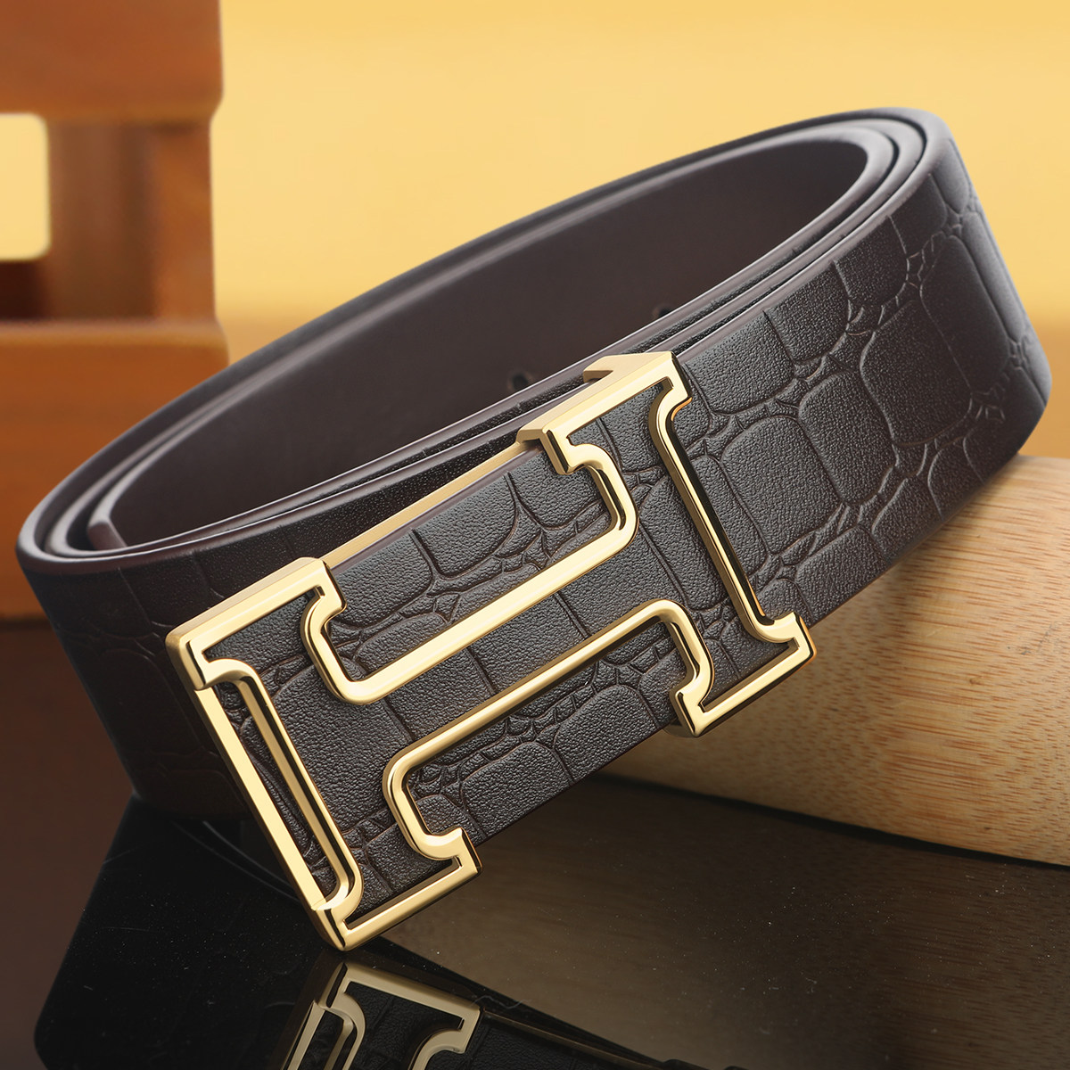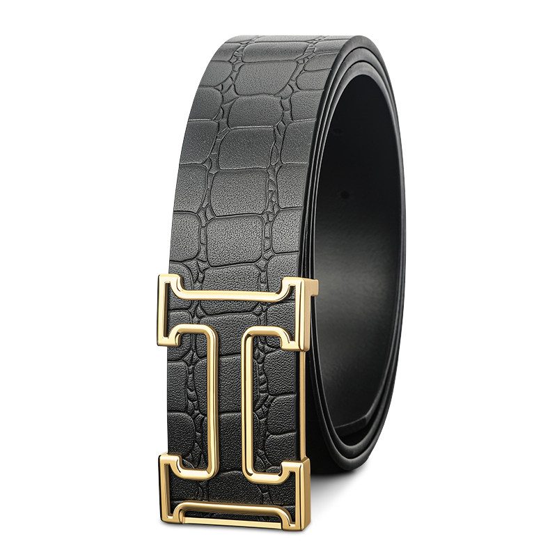新款 男士皮带真皮纯牛皮镂空H字母平滑扣时尚商务百搭加长裤腰带