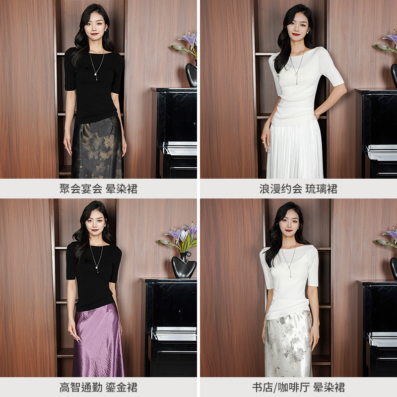 KADIMIYA【醒春集】法式轻奢优雅简约修身毛针织衫短袖T恤内搭