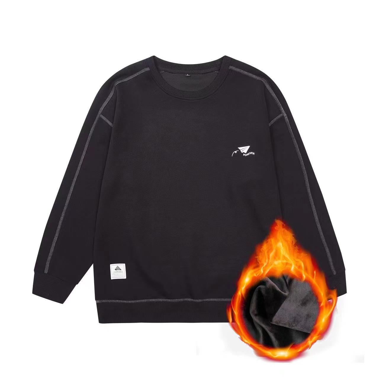 秋冬加绒圆领绣花男卫衣