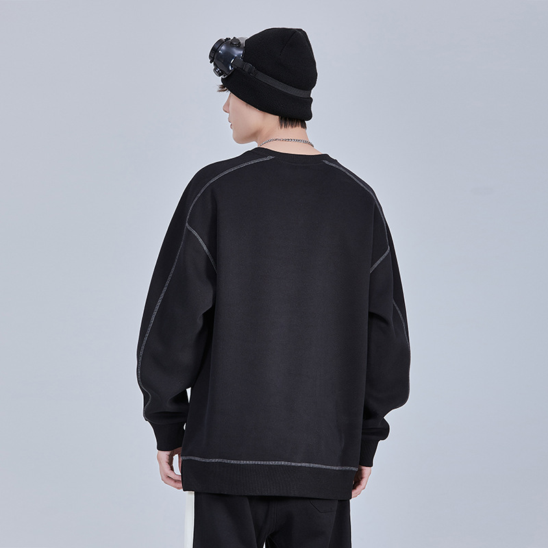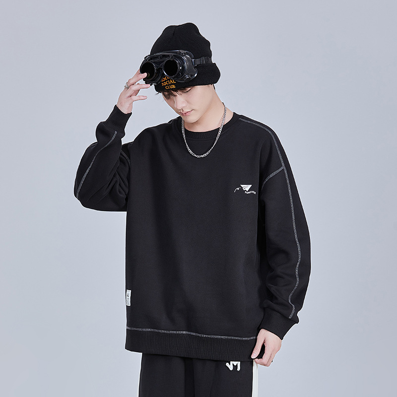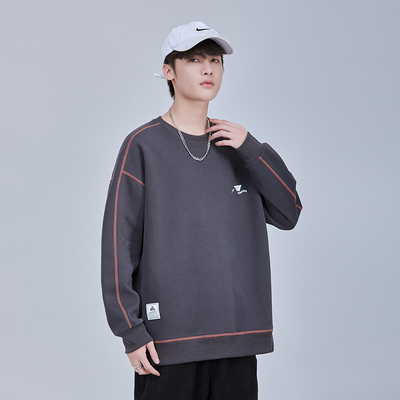 秋冬新款圆领加厚加绒卫衣绣花男宽松大码休闲简约百搭上衣F2146