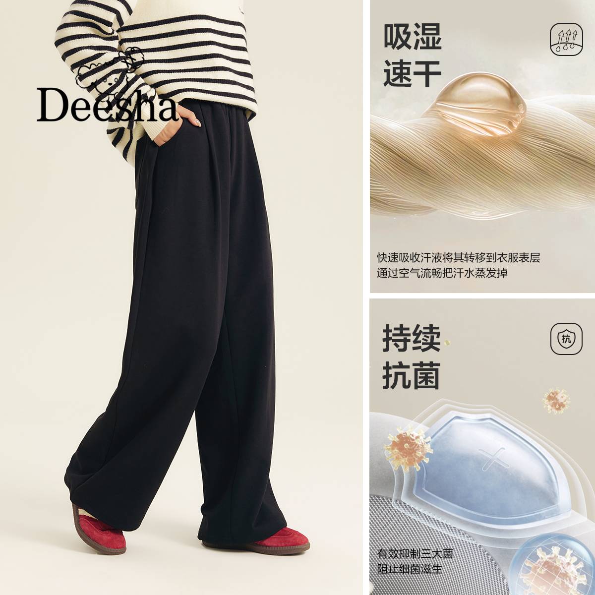 【一裤两穿】笛莎女大童裤子2025秋季新款吸湿针织直筒卫裤休闲裤