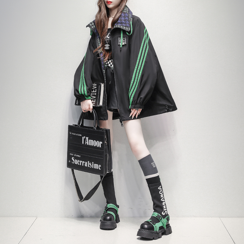 撞色立领两面穿短外套女2025秋季新款拼接时尚宽松休闲短款外套潮