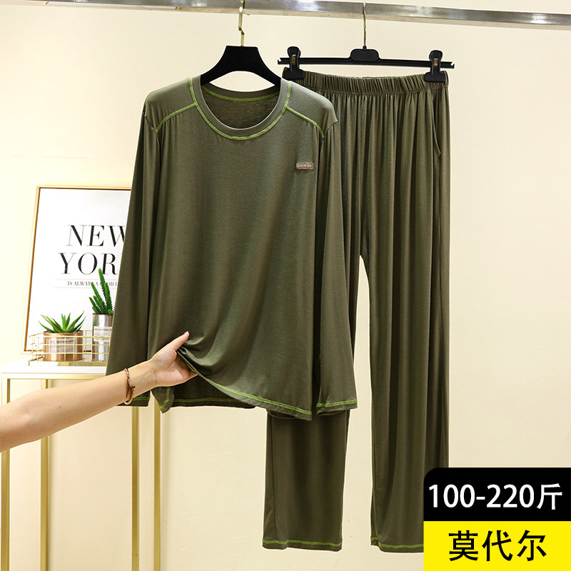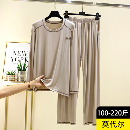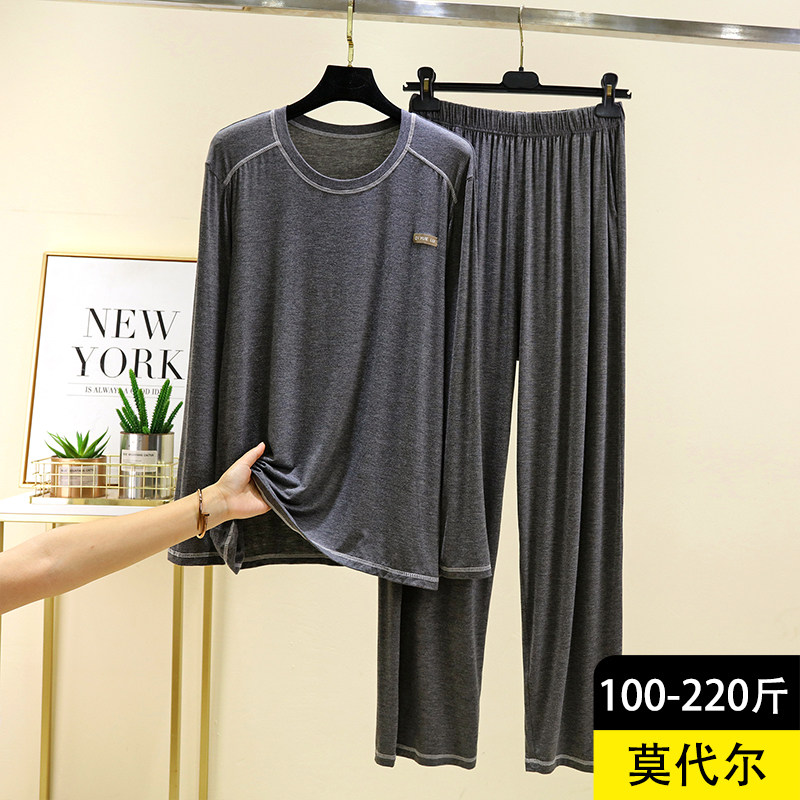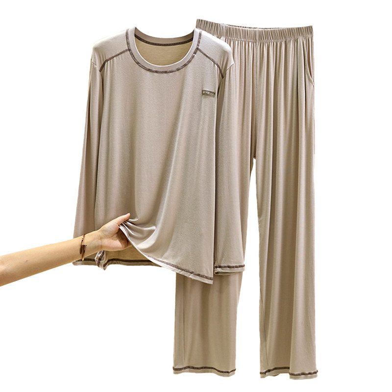 男士莫代尔圆领长袖家居服套装秋季休闲打底衫宽松睡衣睡裤两件套