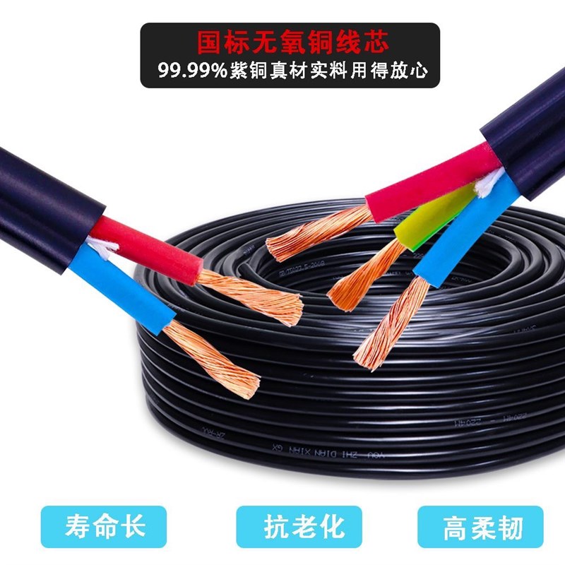 国标纯铜珠江电缆线家用2.3芯1.5 2.5 4 6平方防水防冻耐拉护套线