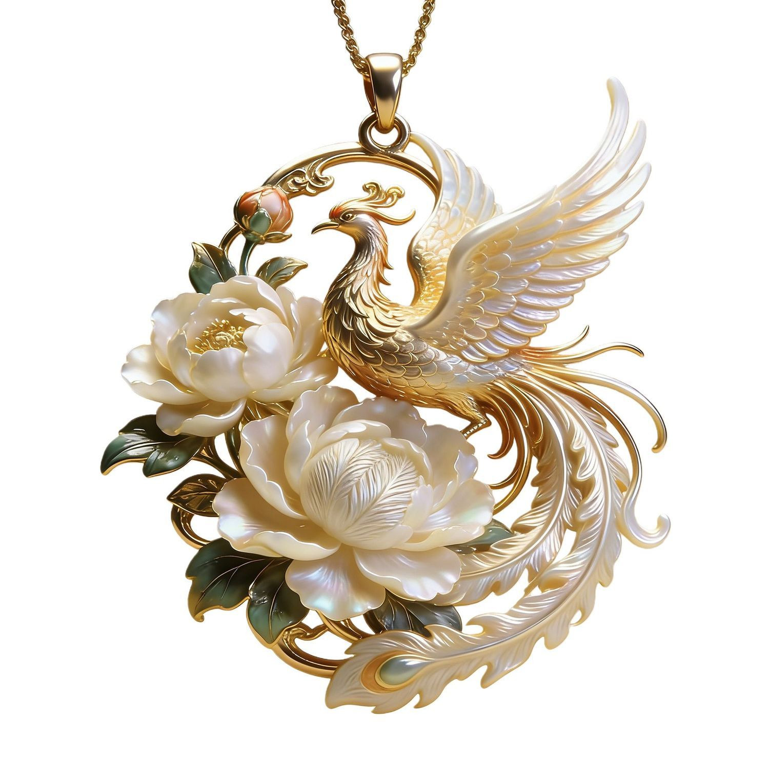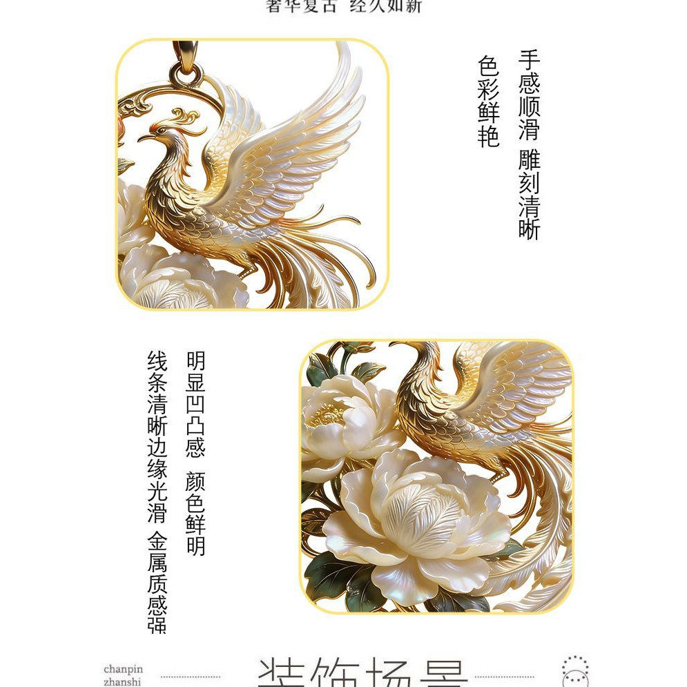 【富贵呈祥】黄金色仿贝母凤凰花朵吊坠新中式百搭马年妈妈款项链