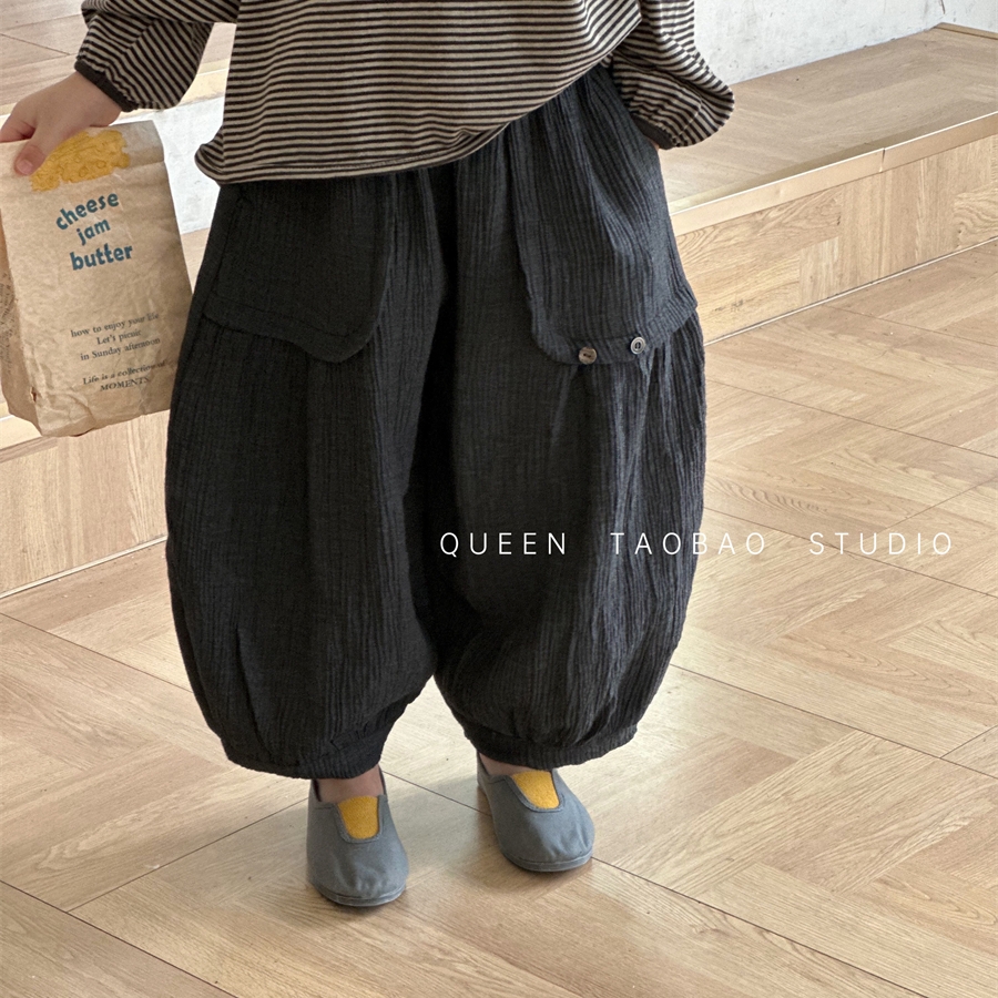 儿童裤子韩国童装女童棉麻褶皱休闲裤2025春秋新品宝宝百搭灯笼裤