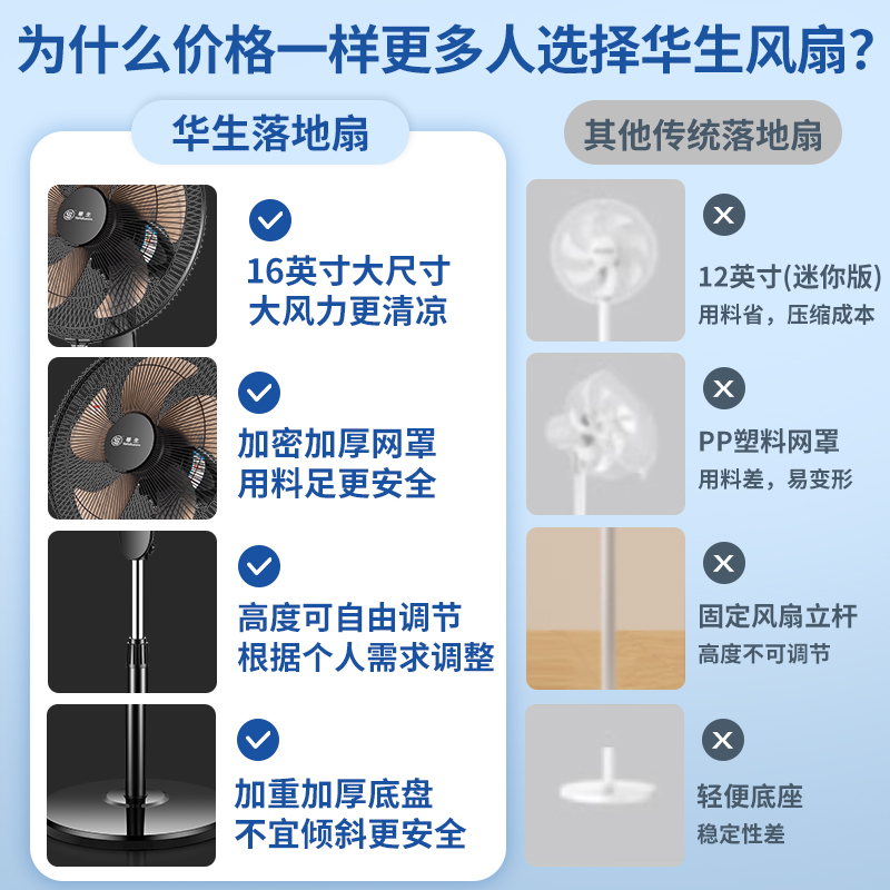 华生电风扇落地扇家用大风力立式风扇遥控办公室宿舍摇头定时电扇