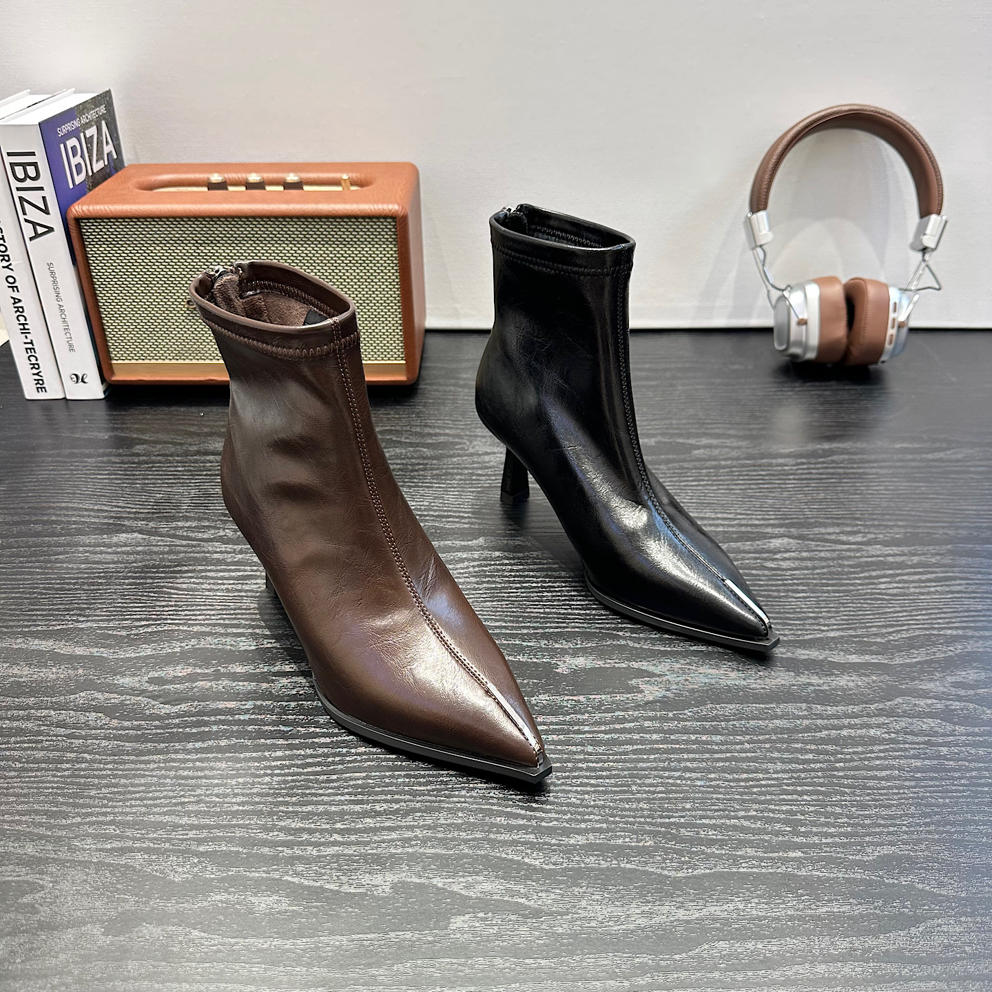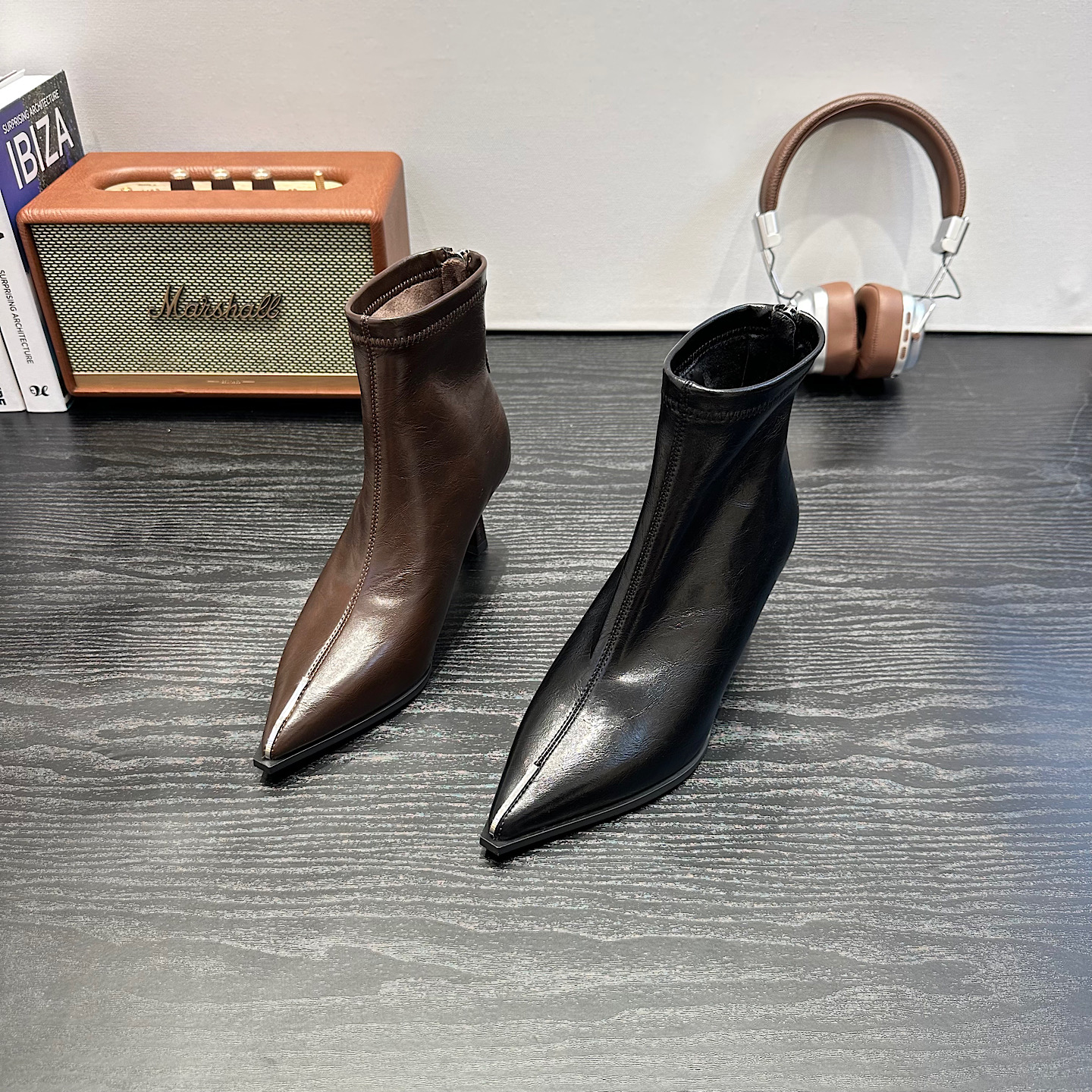 欧货2025秋冬新款时尚百搭马丁靴女英伦风复古短靴尖头细跟瘦瘦靴