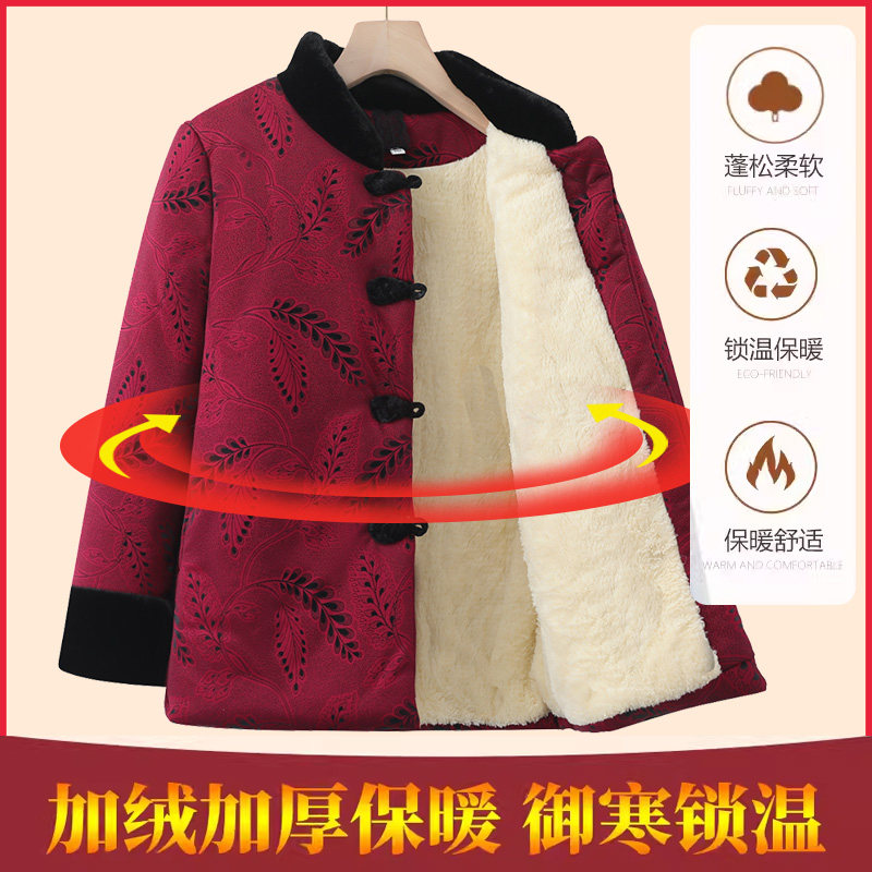 奶奶冬装保暖棉袄中老年人女加绒加厚外套妈妈装冬季棉服老人衣服