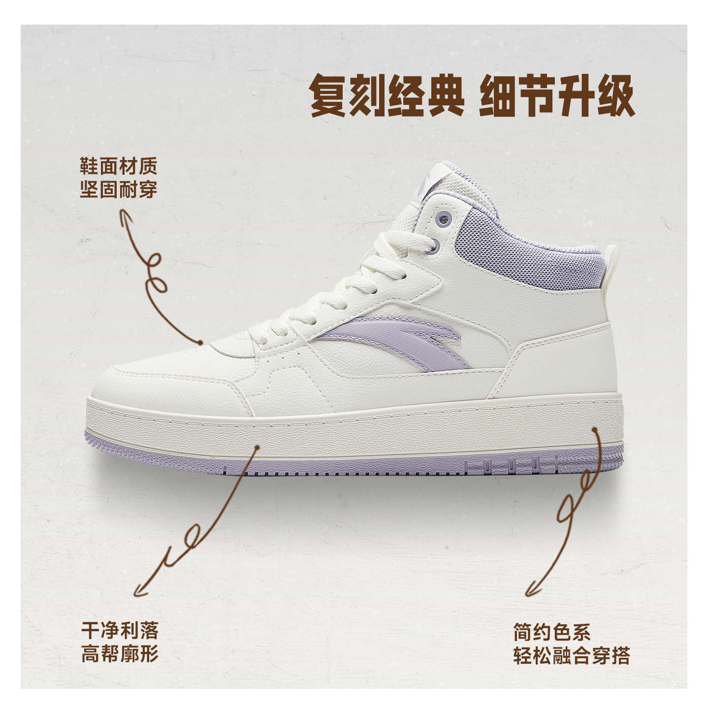 安踏元年高帮板鞋女2025秋季新款