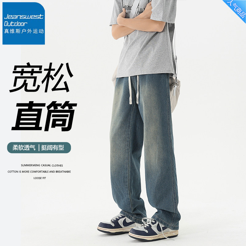 真维斯户外运动男士牛仔裤春秋高街直筒裤阔腿青少年休闲垂感裤子