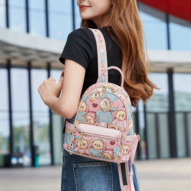 小熊迷你双肩包女软萌帆布儿童旅游小背包维尼熊可爱mini小包包女