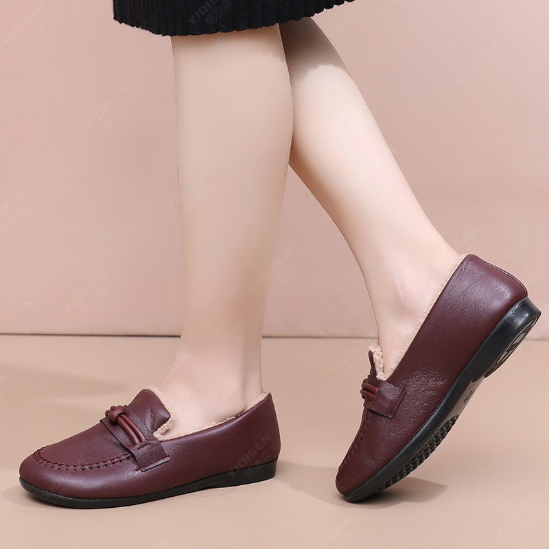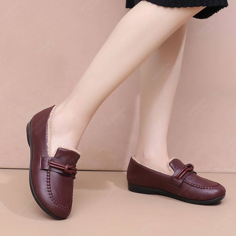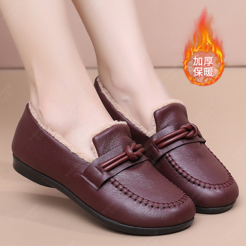 意迪森2025秋冬季女款毛毛豆豆鞋中老年妈妈鞋舒适加绒防滑乐福鞋