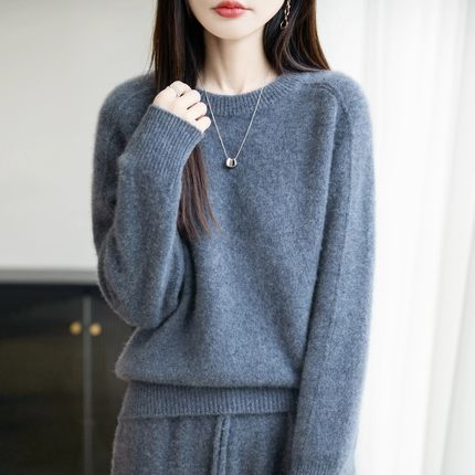 秋冬灰色加厚洋气圆领毛衣女纯色套头内搭针织宽松打底衫气质上衣