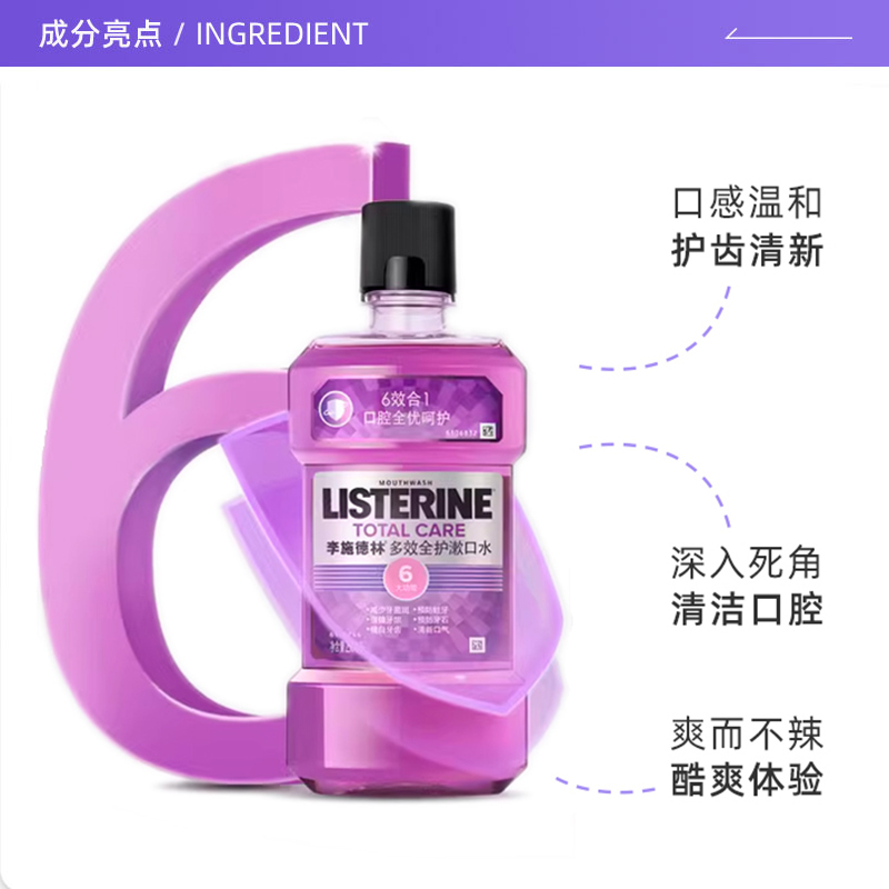 【自营】李施德林多效漱口水3瓶清新口气减去口臭含氟预防牙结石