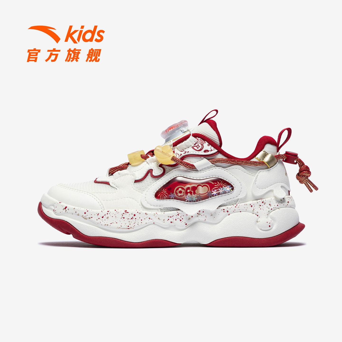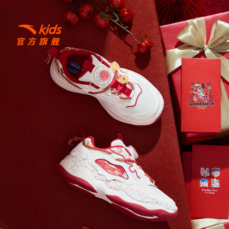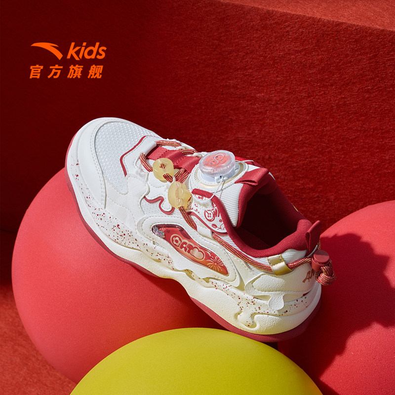 棉花糖新年红色安踏儿童板鞋女童鞋2026春季新款软弹潮流滑板鞋