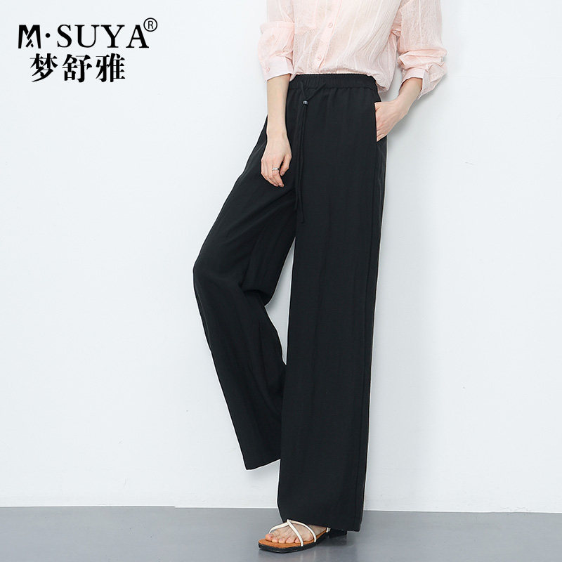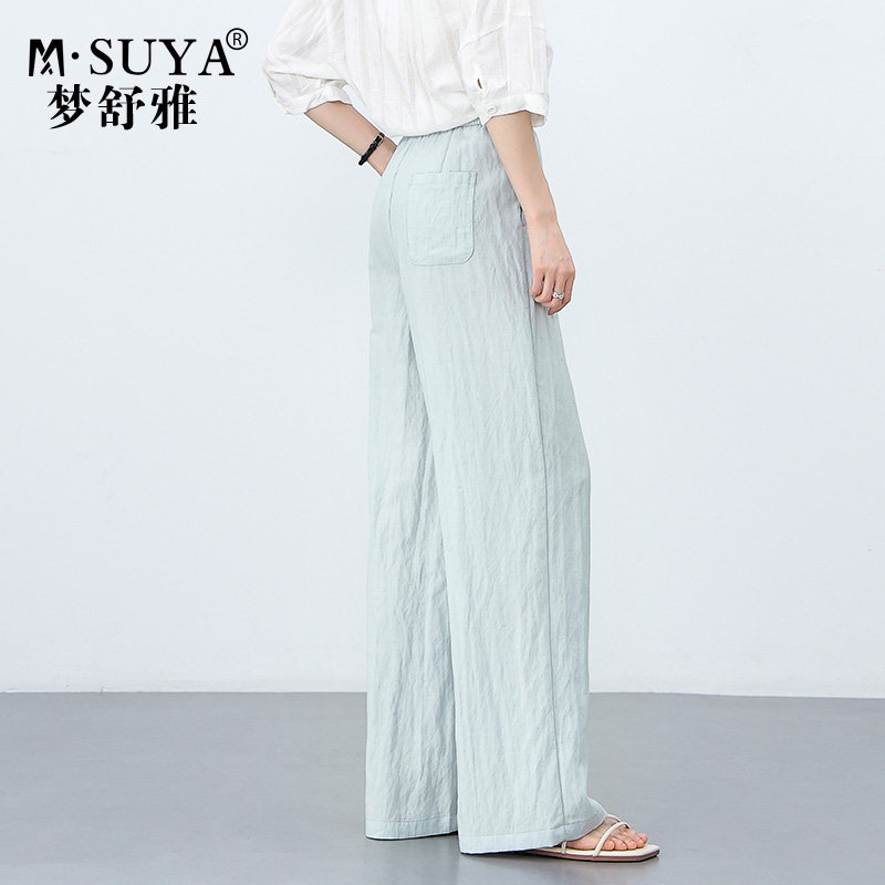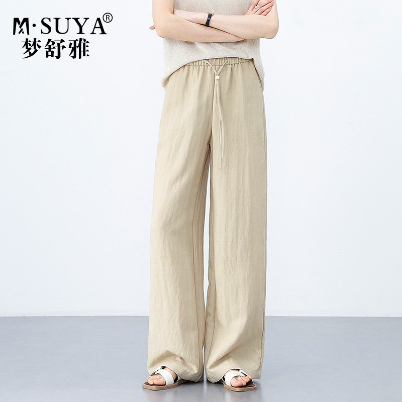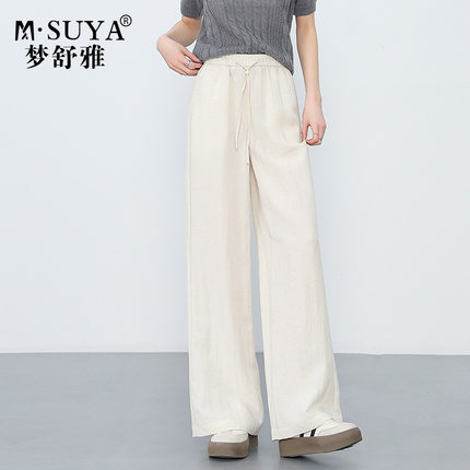梦舒雅新款天丝亚麻裤女夏薄款宽松高腰日常舒适慵懒风休闲阔腿裤