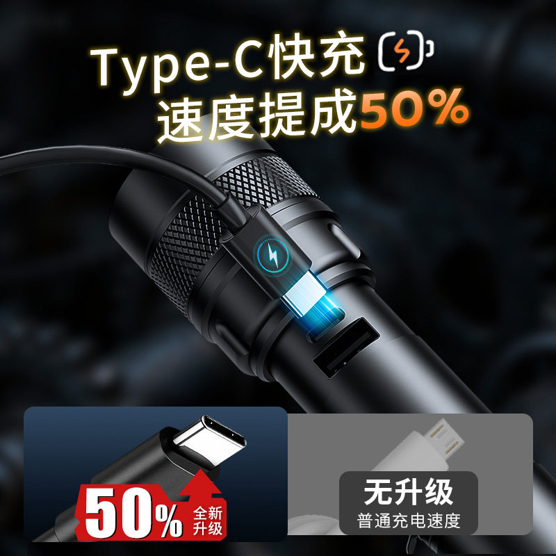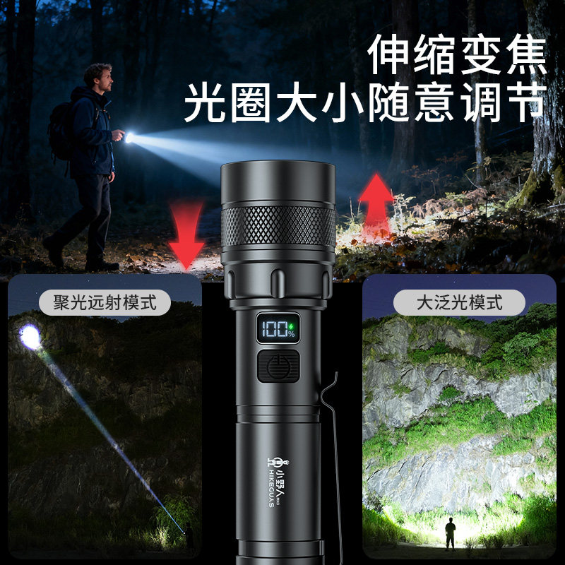 手电筒强光充电式2025新款超亮远射便携变焦登山户外家用耐用小型