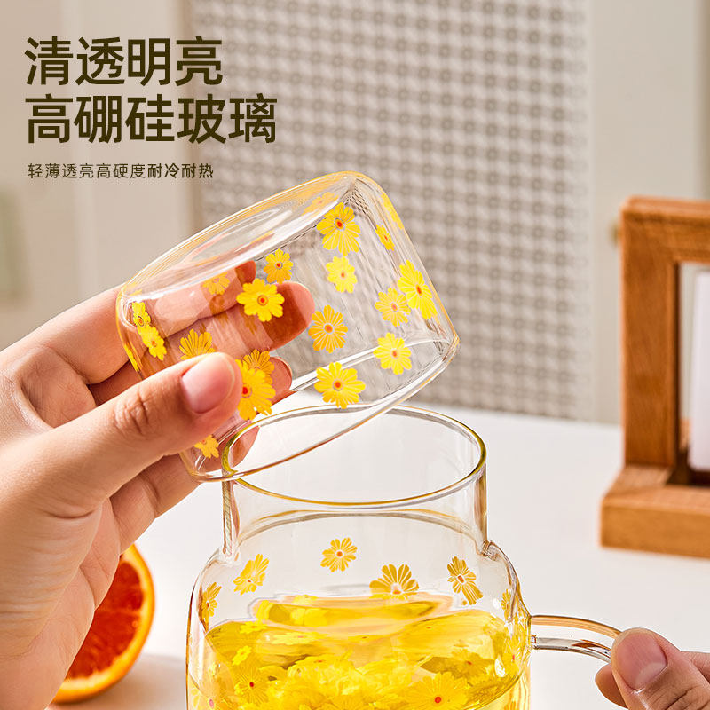 耐高温雏菊玻璃杯办公室冷饮料杯泡茶杯带把手喝水杯子