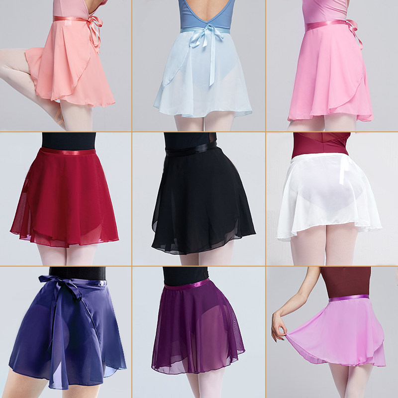 儿童舞蹈服半身裙女童练功服芭蕾舞蹈纱裙成人一片式系带围裙短裙