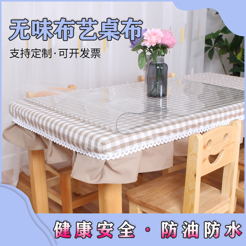 PVC学生桌布套桌罩小学生防水防滑课简约布艺棉麻餐桌定制长方形