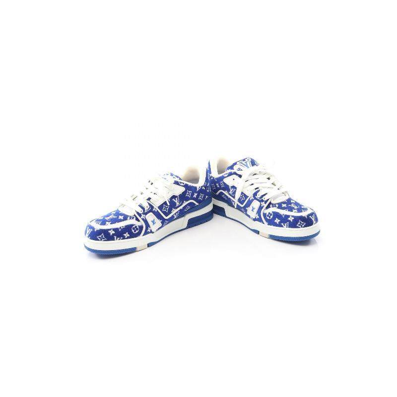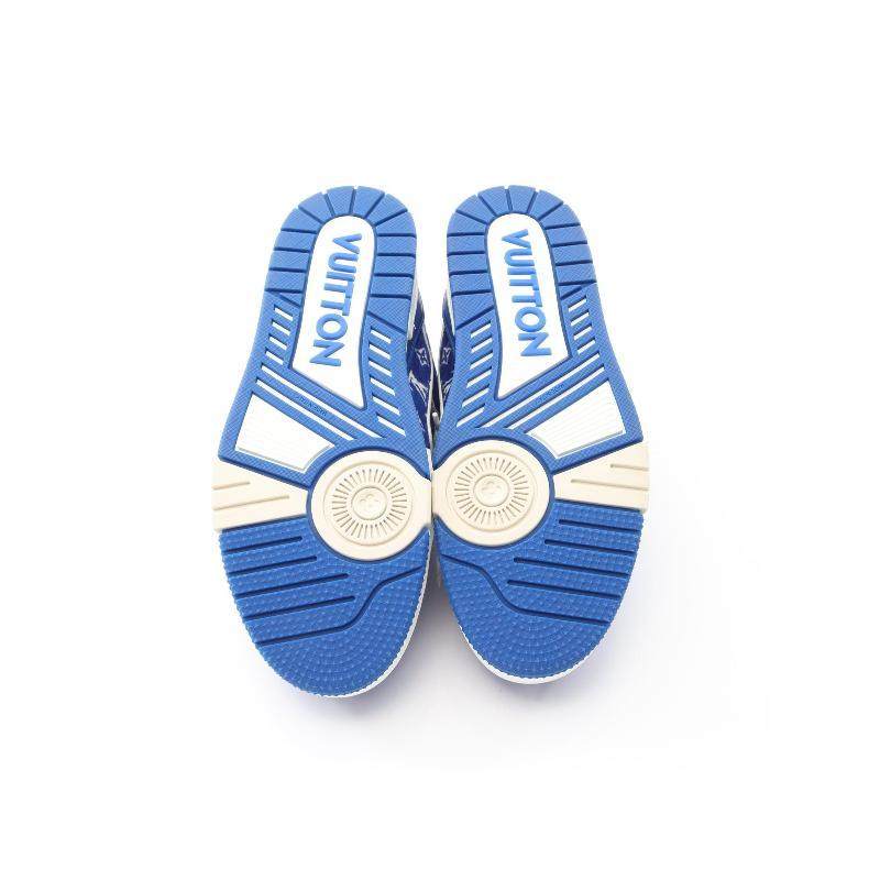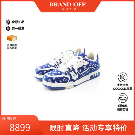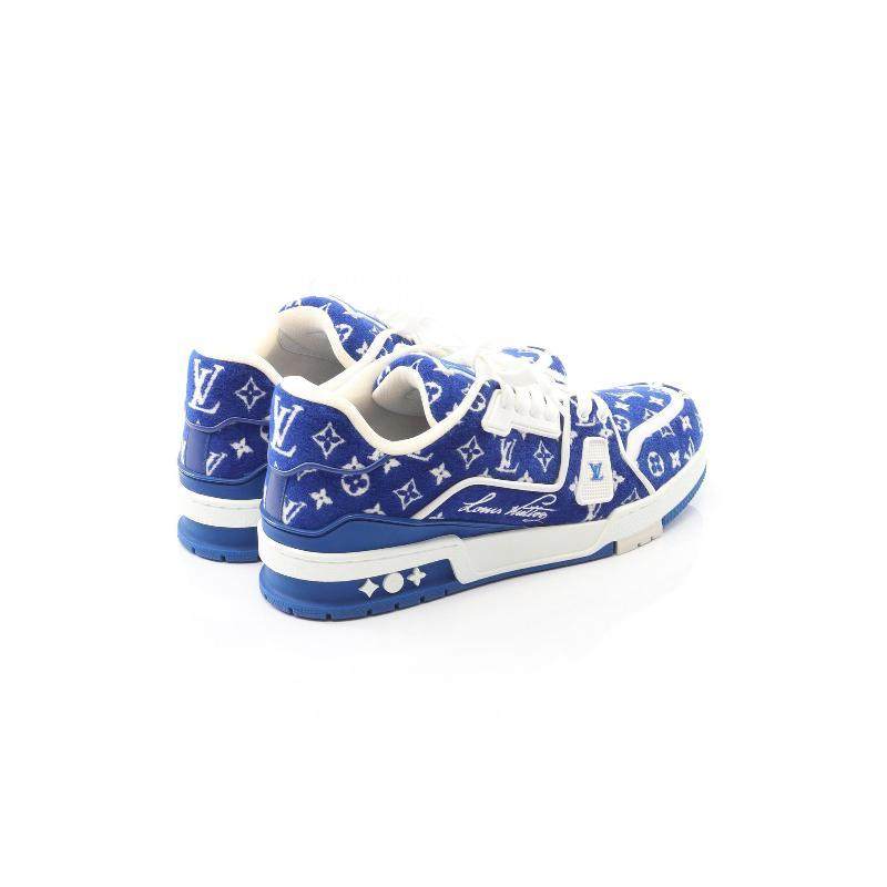 中古LV路易威登男S级99新sneakers运动鞋绒面革小牛皮鞋蓝色复古