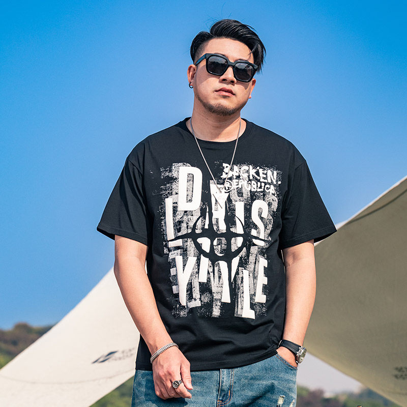 GxxH夏季大码男装潮牌短袖T恤宽松休闲街头涂鸦印花圆领上衣230斤