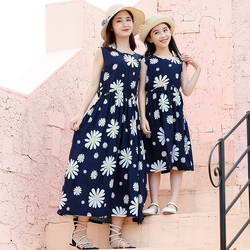 女童沙滩裙儿童棉绸连衣裙夏季薄款大童小女孩绵绸裙子亲子装长裙