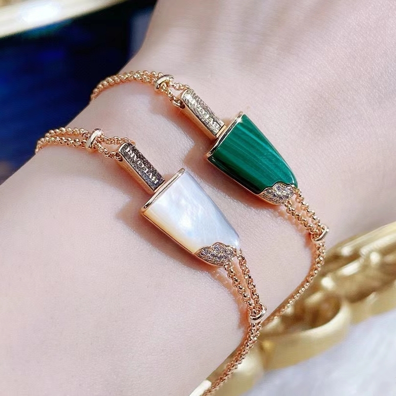【公价1.6万+】99新宝格丽玫瑰金孔雀石绿雪糕冰淇淋手链正品二手