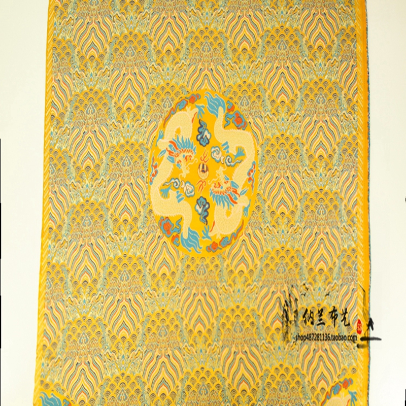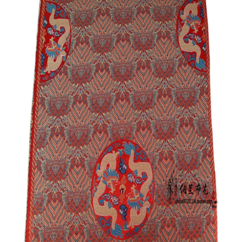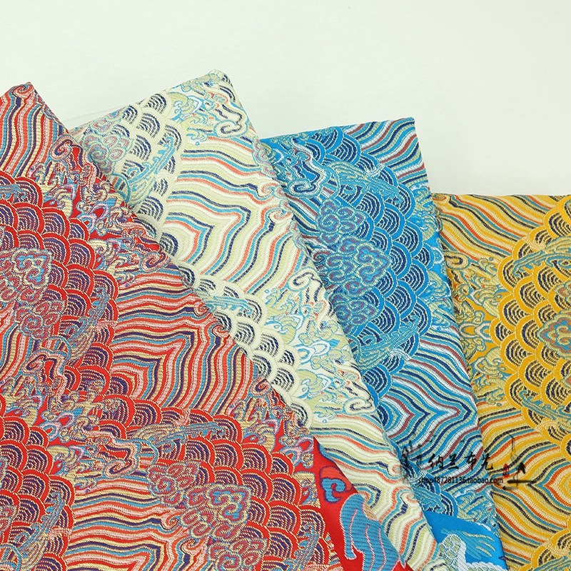 藏式龙纹旗袍亲子装丝绸缎面料中国风海浪云纹仿古唐装织锦缎布料