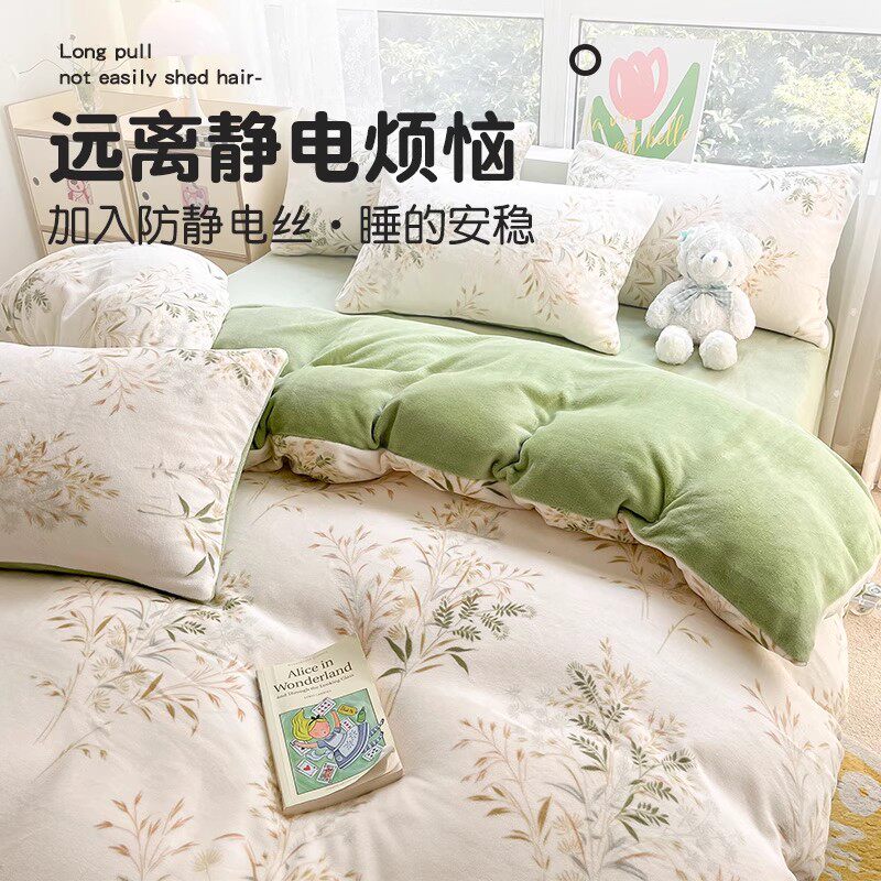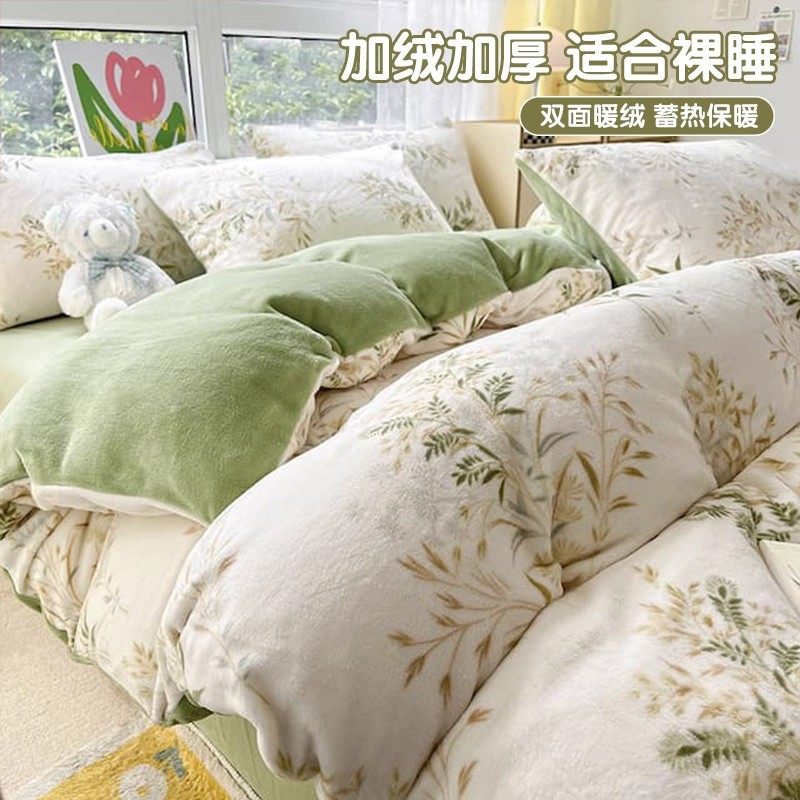 南极人牛奶绒四件套2025新款冬季加厚保暖被套双面法兰绒加绒床单
