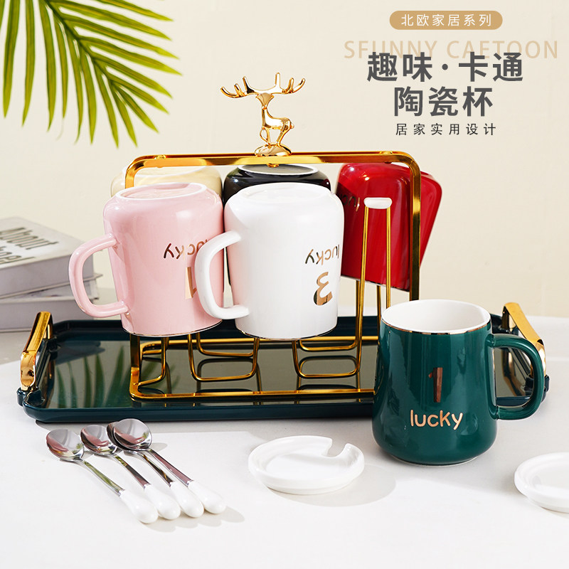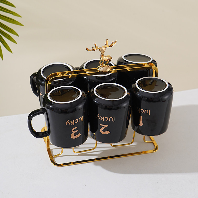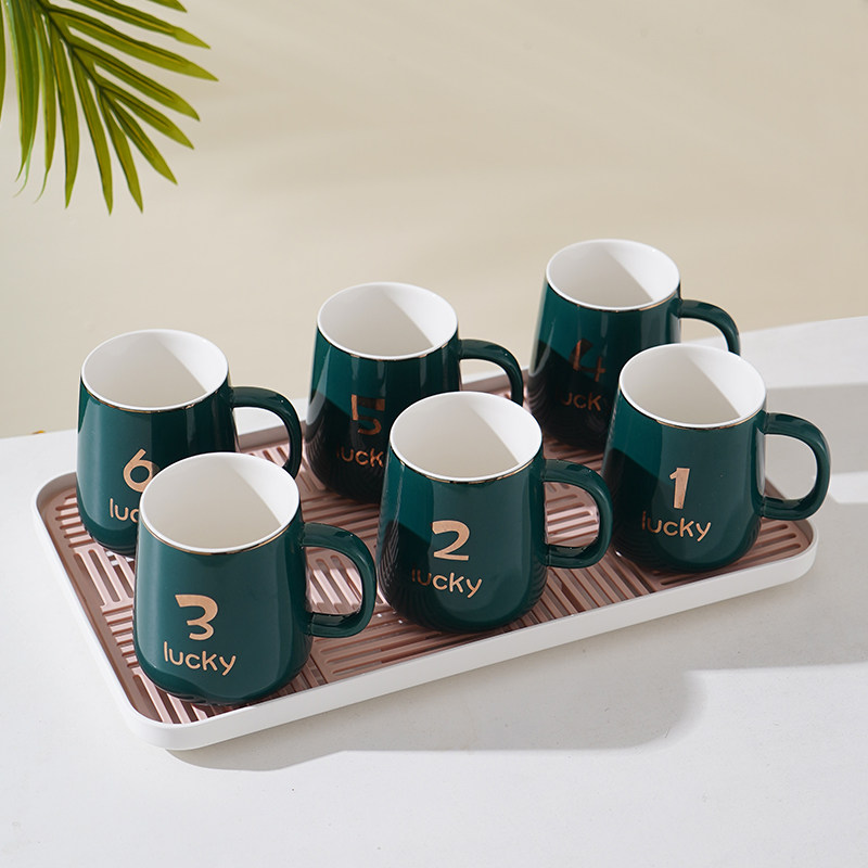 家用陶瓷杯家庭套装茶杯马克杯办公杯客厅水杯套装6只装数字杯
