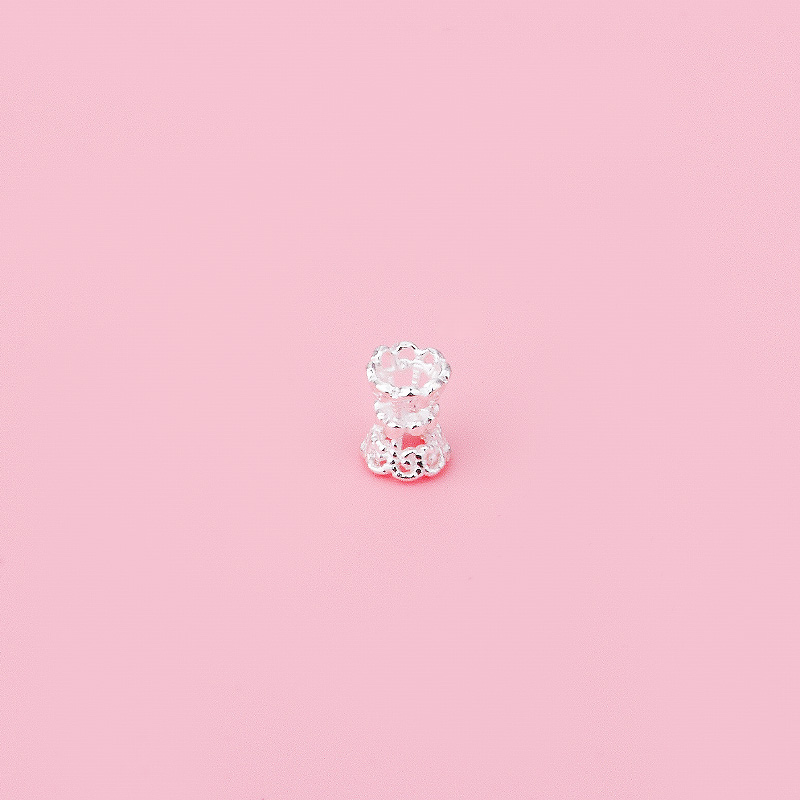 S925纯银桶珠隔珠花托手工diy串珠珍珠项链水晶手链配件散珠银饰