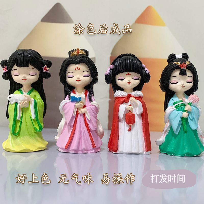 石膏娃娃彩绘涂鸦古风美女儿童DIY手工绘画白胚玩具娃娃涂色摆件