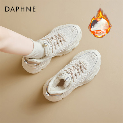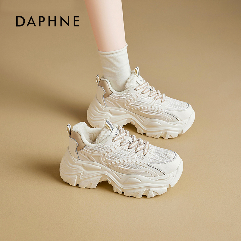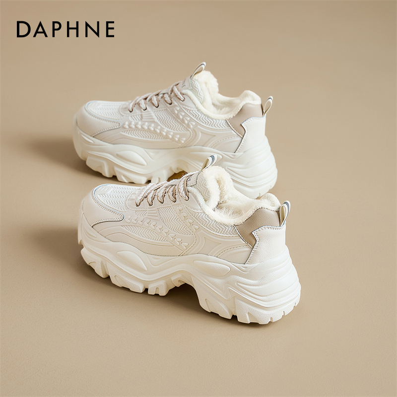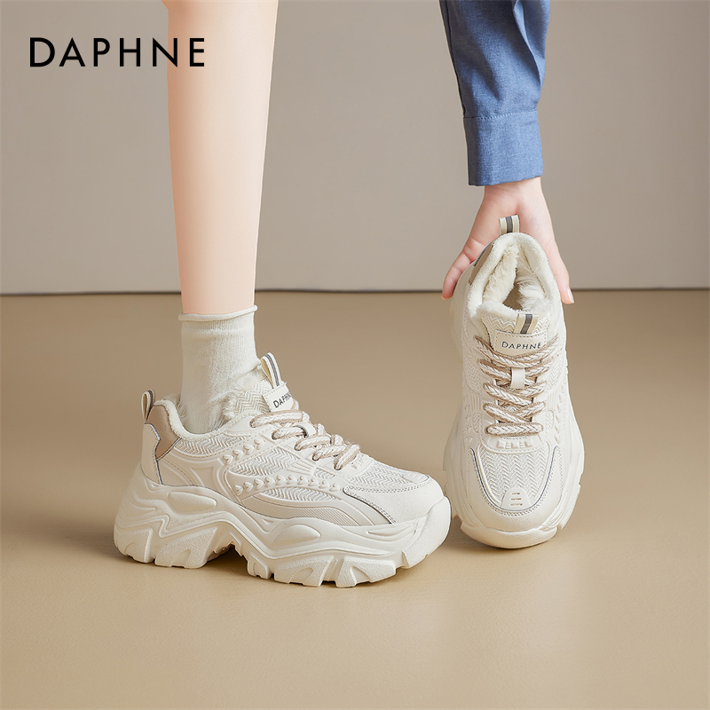 达芙妮老爹鞋女2025新款冬季厚底增高休闲运动棉鞋加绒加厚雪地靴