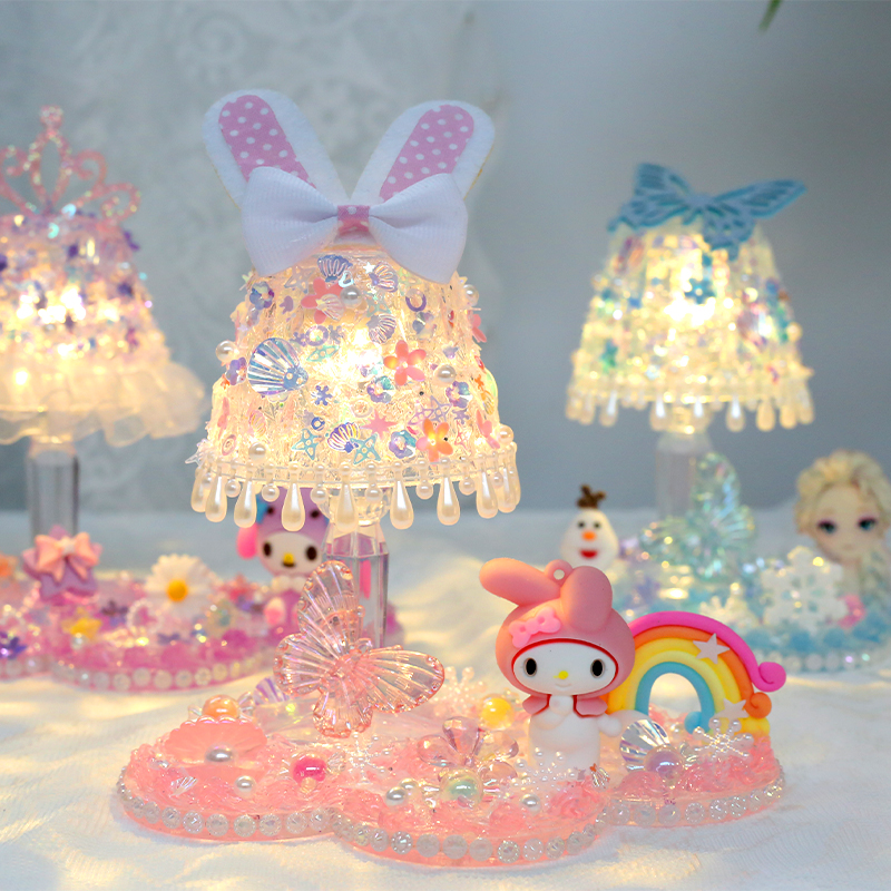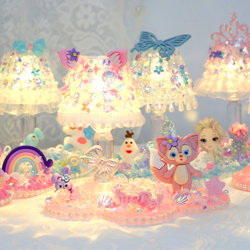 儿童diy奶油胶水晶小台灯手工制作女孩可爱小夜灯材料包 创意玩具