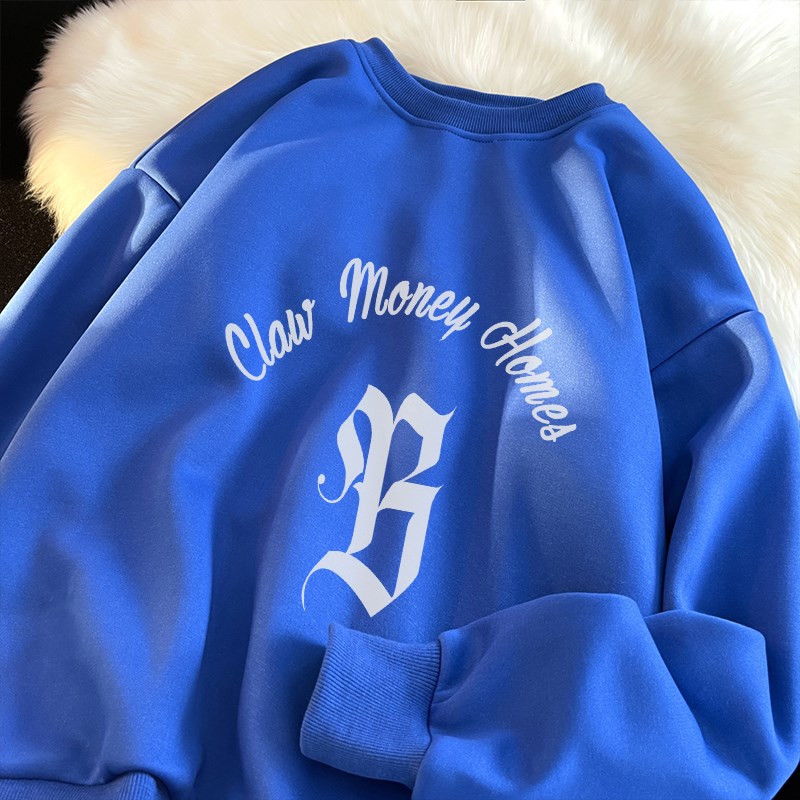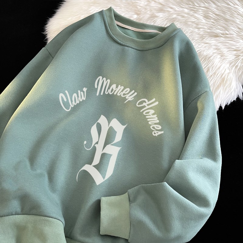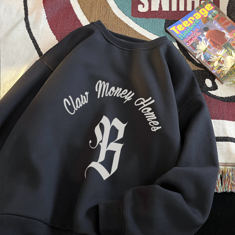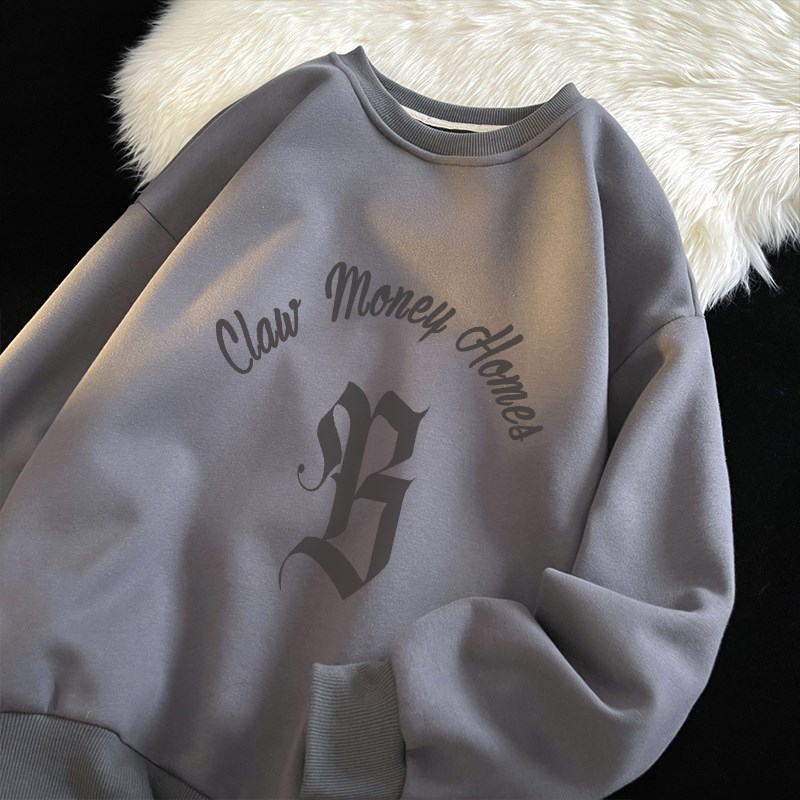 哥特字母重磅圆领卫衣男款春季无帽内搭套头衫ins潮流大码上衣服