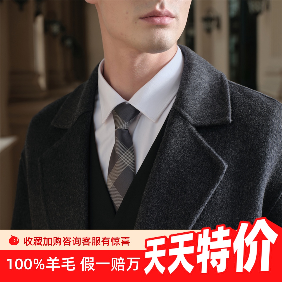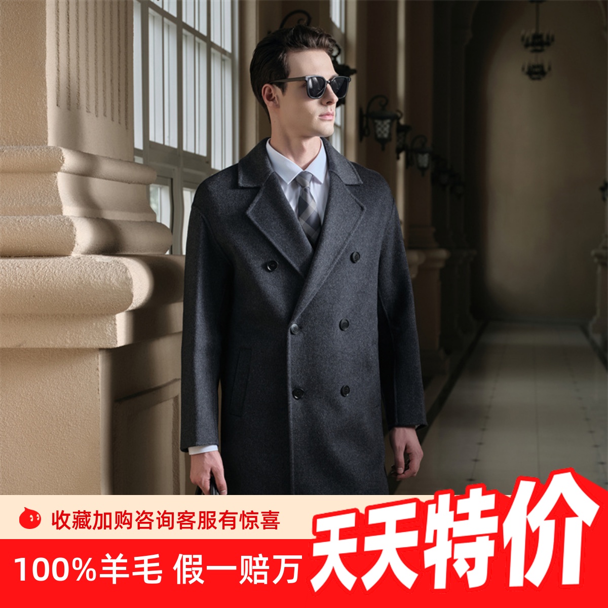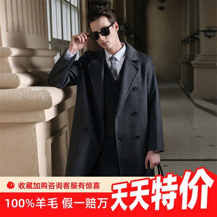 【100%羊毛】男士秋冬双面呢子大衣加厚长款西装领外套羊绒风衣