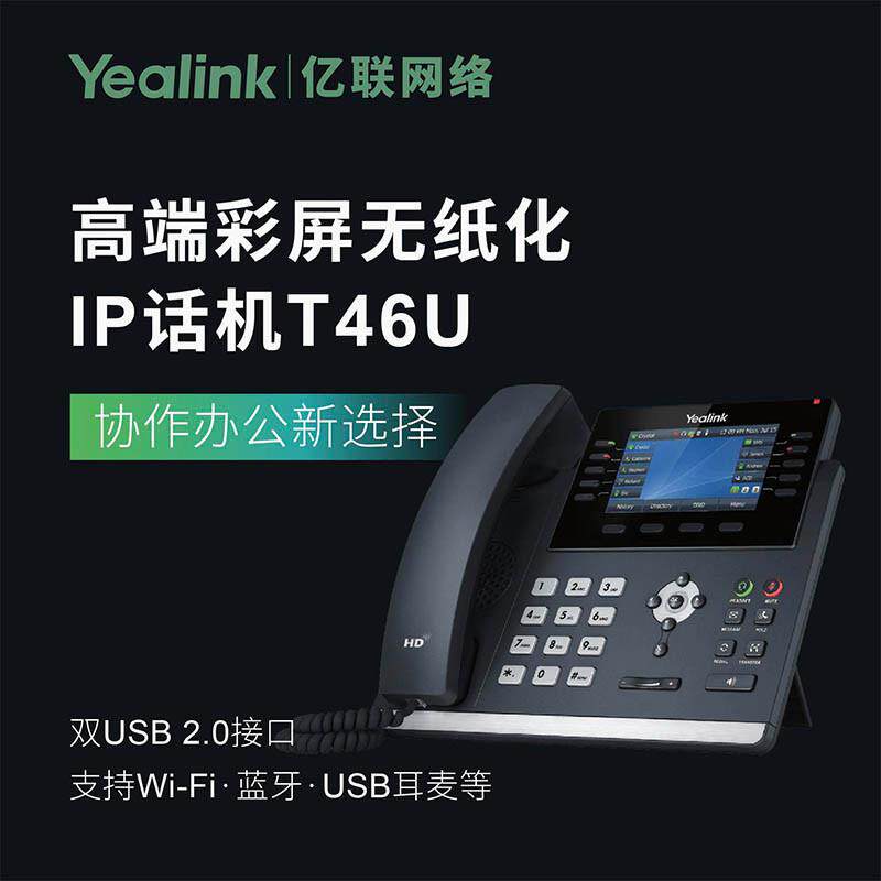 Yealink亿联SIP-T46UIP话机4.3英寸高端彩屏支持扩展台千兆双