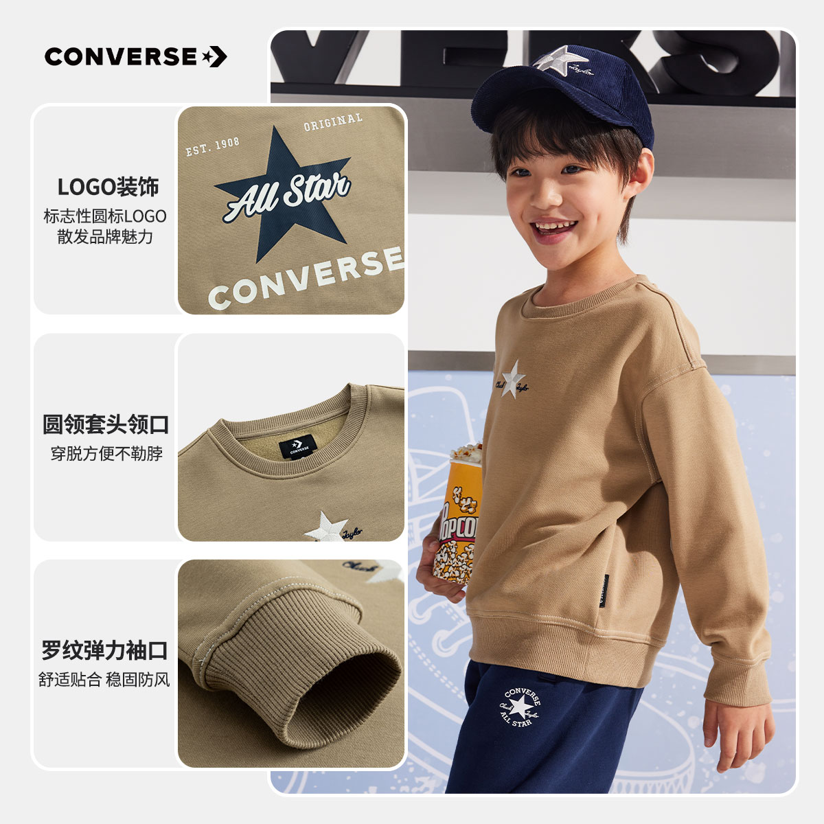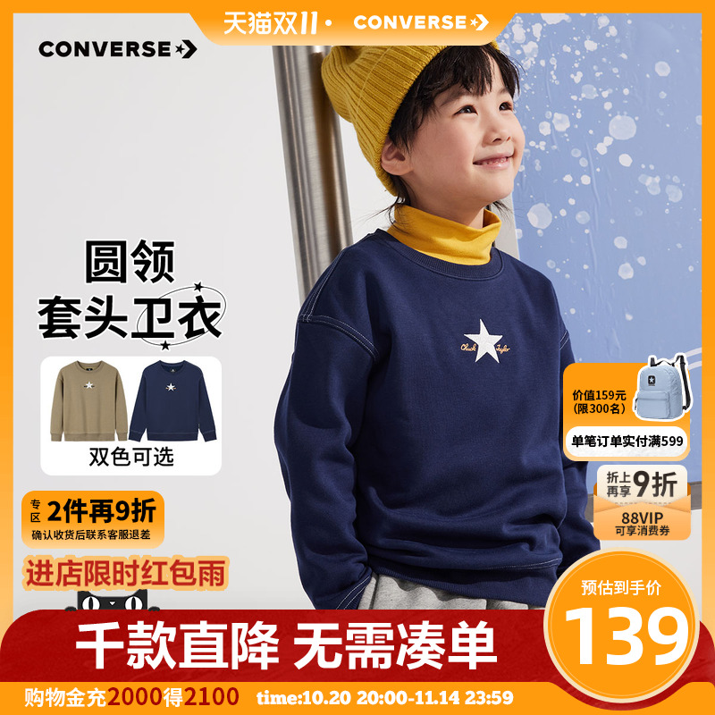 Converse匡威儿童装男童卫衣加绒2025秋季中大童休闲上衣打底衫潮