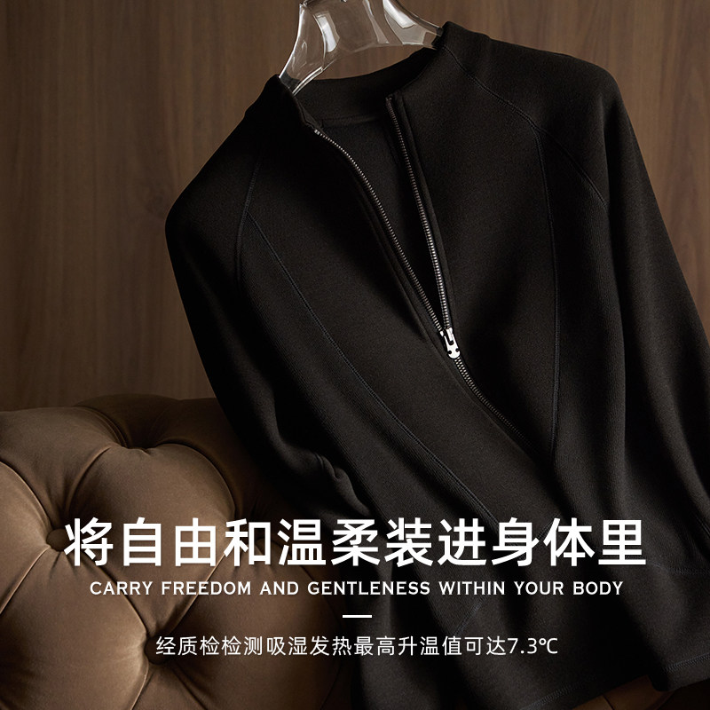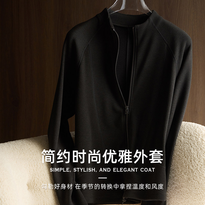秘鲁进口德绒!山羊绒立领双拉链外套叠穿上衣内搭卫衣打底开衫女