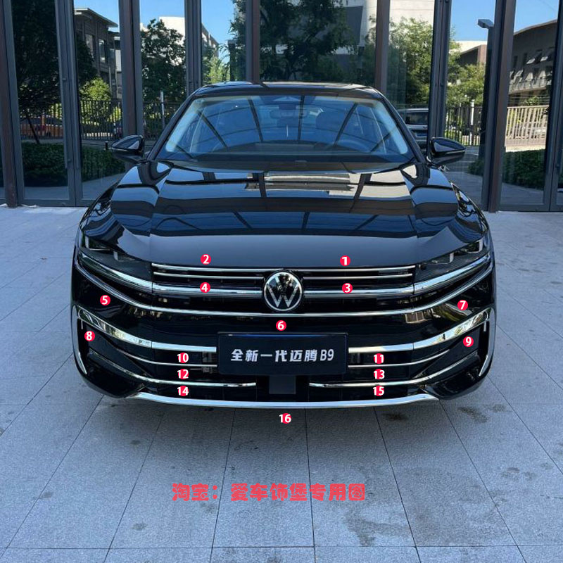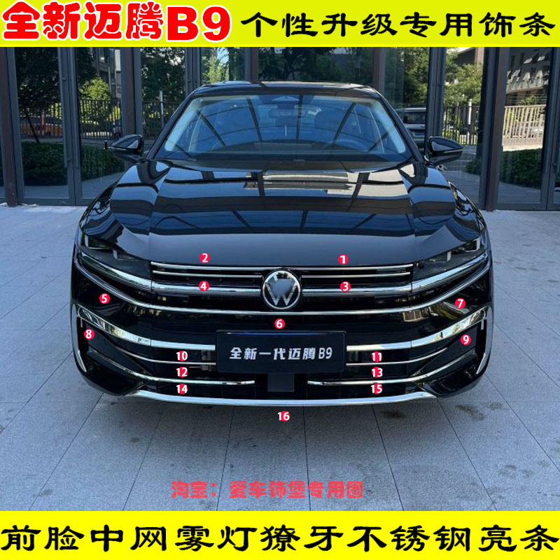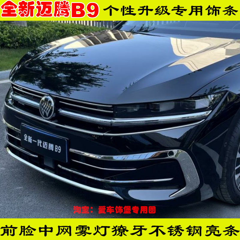 改装24款新迈腾B9专用前脸中网亮条不锈钢前唇前铲雾灯框防擦饰条