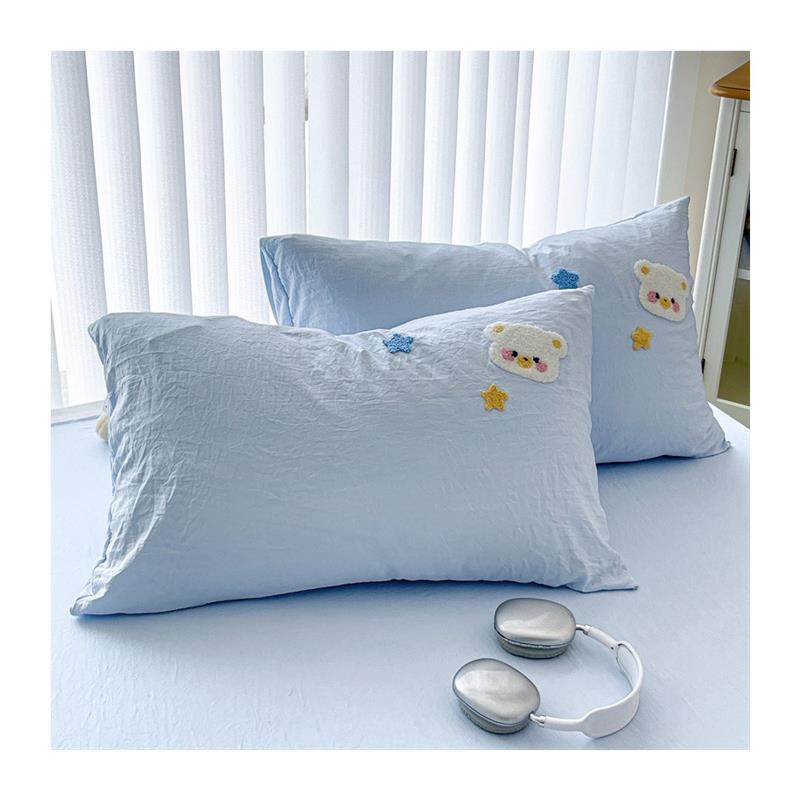 MOCO-TOTO毛巾绣床上四件套非全棉纯棉床单人被套水洗棉三件套