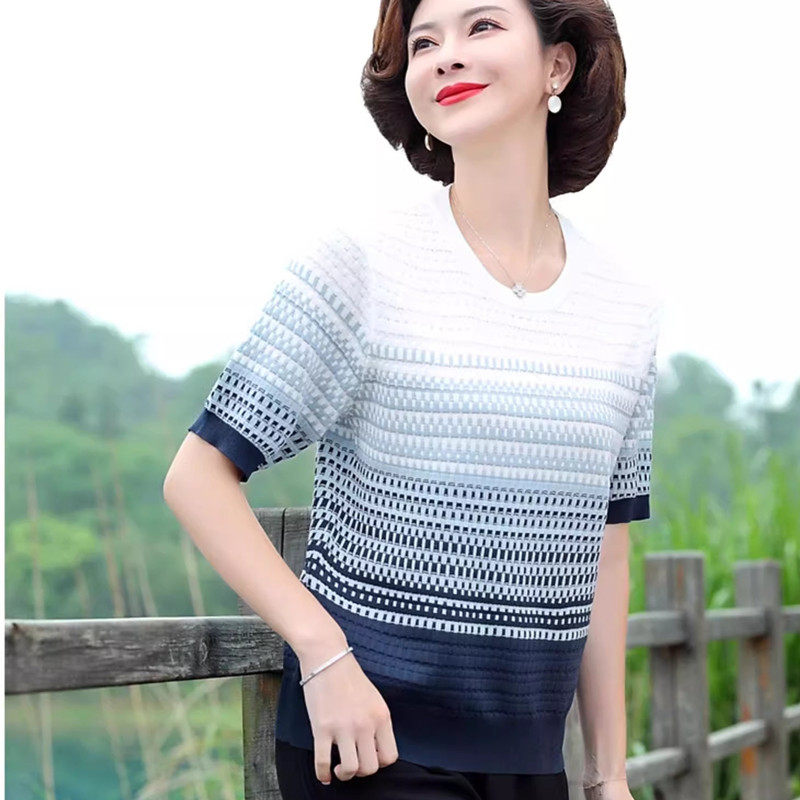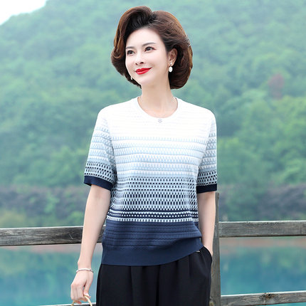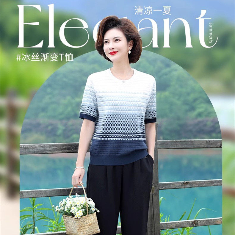 母亲节妈妈夏装洋气冰丝上衣服中年女装短袖薄T恤2025新款中老年
