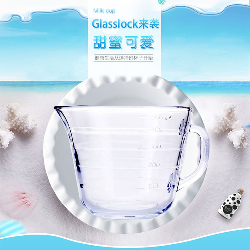 韩国进口Glasslock玻璃牛奶杯 耐热加厚玻璃量杯 刻度水杯子500ml
